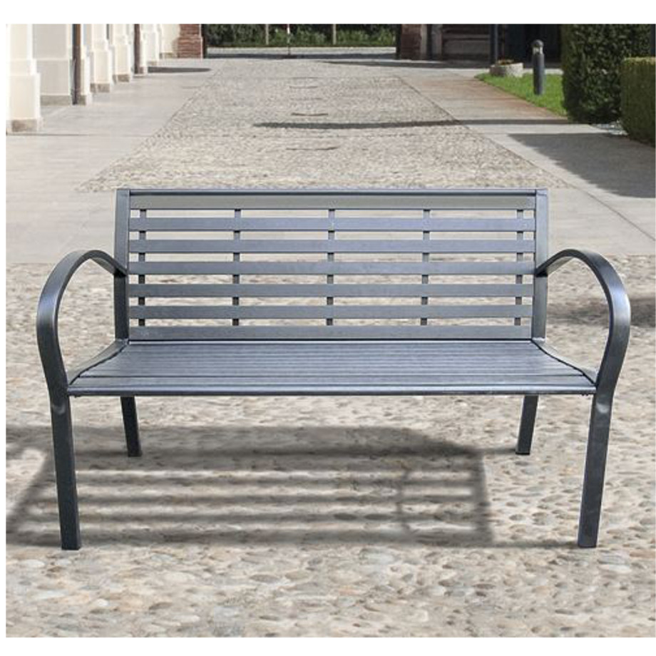 Panchina in Metallo. Struttura in acciaio e aste schienale in polywood – Colore grigio antracite – Peso 20 kg.
