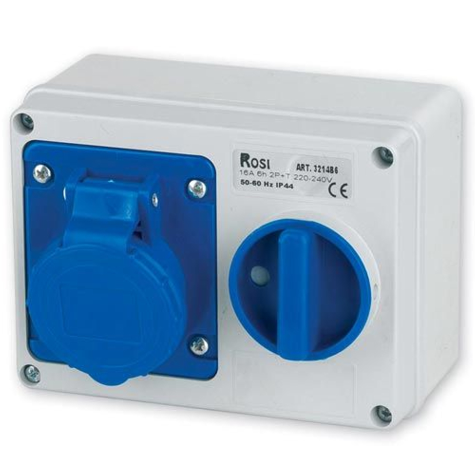 Presa Fissa Industriale con Interruttore a Parete Marca ROSI 14.3214B6