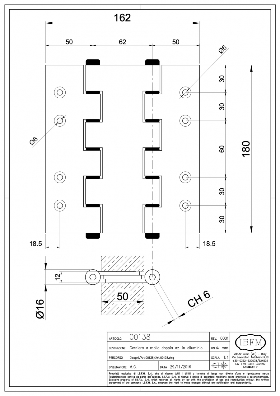 La CERNIERA ALLUMINIO DOPPIA AZIONE CON MOLLA IBFM 138A è realizzata interamente in alluminio, un materiale leggero ma estremamente resistente alla corrosione. Questo la rende ideale per essere installata anche in ambienti esterni o in contesti dove è richiesta una maggiore resistenza agli agenti atmosferici. L’alluminio anodizzato, utilizzato per la costruzione, assicura una finitura lucida e una lunga durata nel tempo, anche in condizioni ambientali difficili.