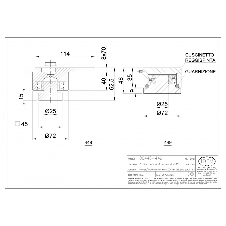 Cardini a Cuscinetto 70 mm per Cancelli IBFM codice 448449 tipo grande