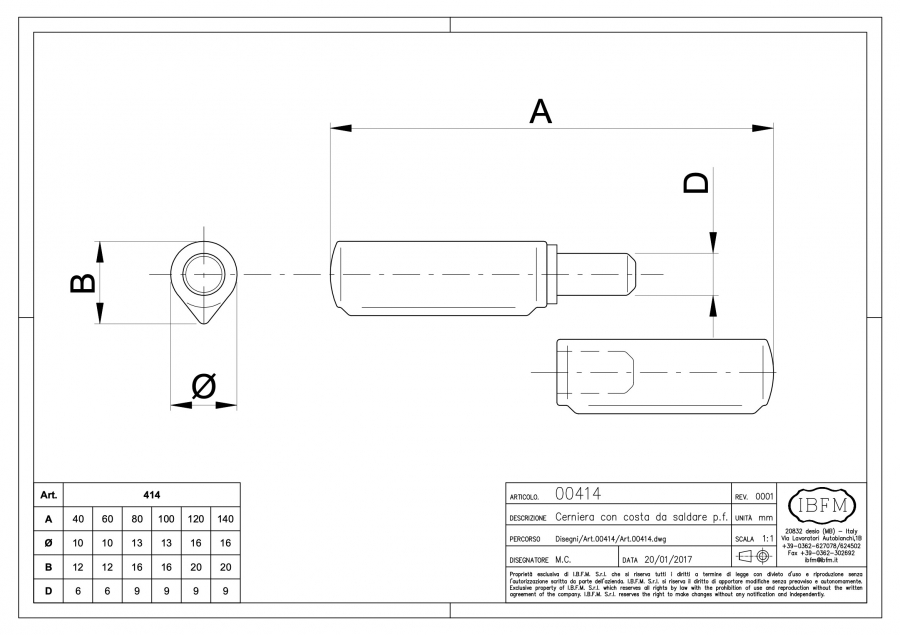 Cerniera con Costa da Saldare Perno Fisso IBFM art. 414